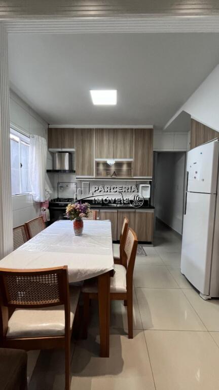2 dormitórios sendo 1 suite, sala cozinha, banheiro social, área de serviço, corredor lateral, pequeno quintal aos fundos, garagem ampla.